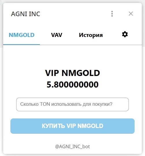 50. Для отправки токенов TON в мини-приложении из Телеграм, нужно вписать цифру в поле, отмеченное текстом «Сколько TON использовать для покупки?», и нажатием кнопки «КУПИТЬ VIP NMGOLD» - после этого автоматически открывается кошелёк Tonkeeper для выполнения транзакции. [8]